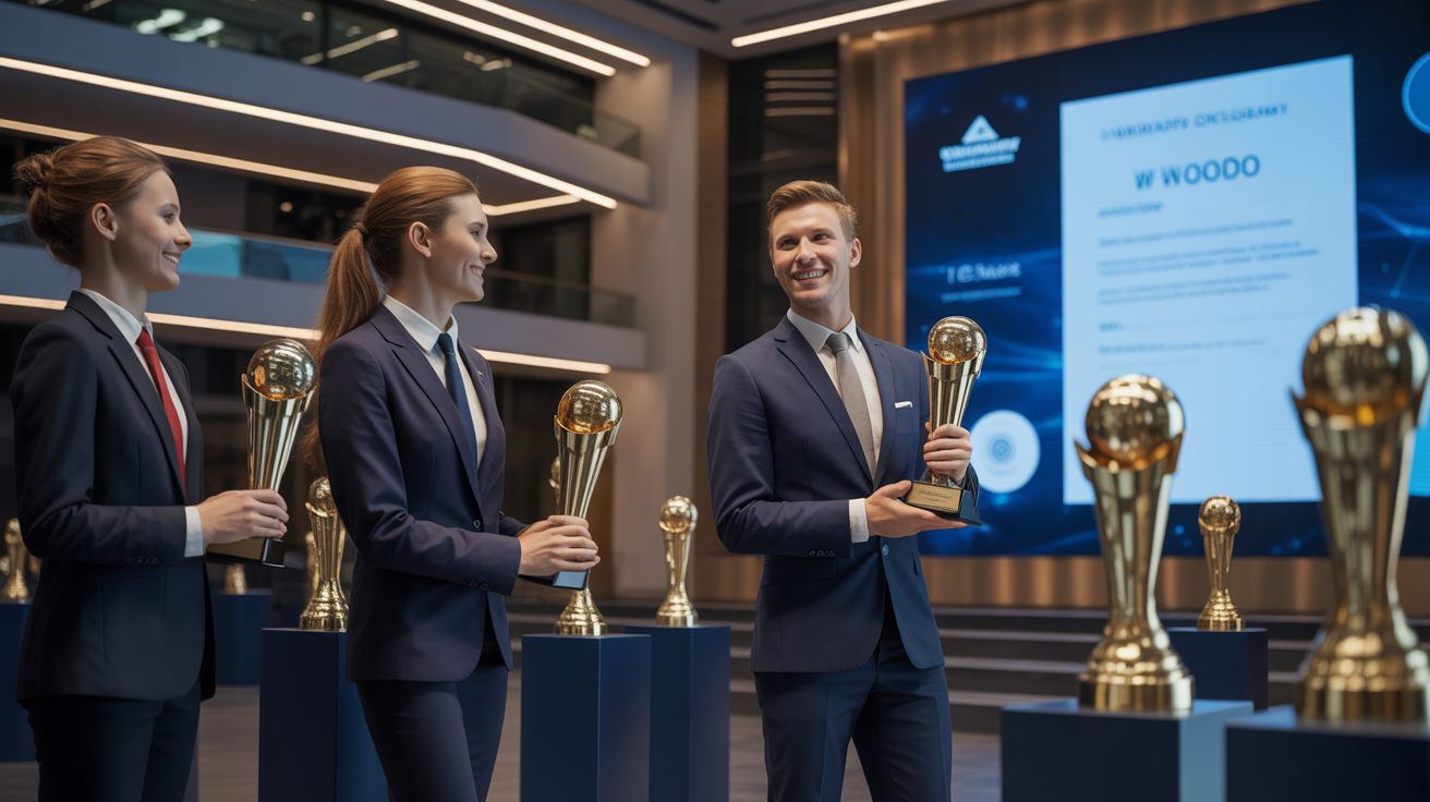 NominaPro, desarrollado por Laooz Studios, es un sistema completo para gestionar reconocimientos corporativos de principio a fin. Permite a las empresas crear eventos de votación con autenticación segura, emitir diplomas digitales automáticos y hasta incluir estatuillas físicas personalizadas.